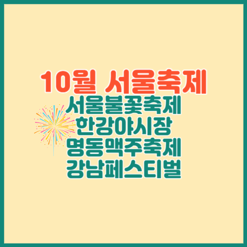 올해도 어김없이 나들이하기 좋은 계절인 가을이 다가왔습니다. 10월에는 서울에서 다양한 축제를 하는데요. 오늘은 남녀노소 다 같이 즐길 수 있는 가볼 만한 축제를 알아볼게요 :) 미리 계획하시고 연인과 데이트하거나, 아이들 데리고 혹은 부모님 모시고 가면 좋을 것 같습니다.