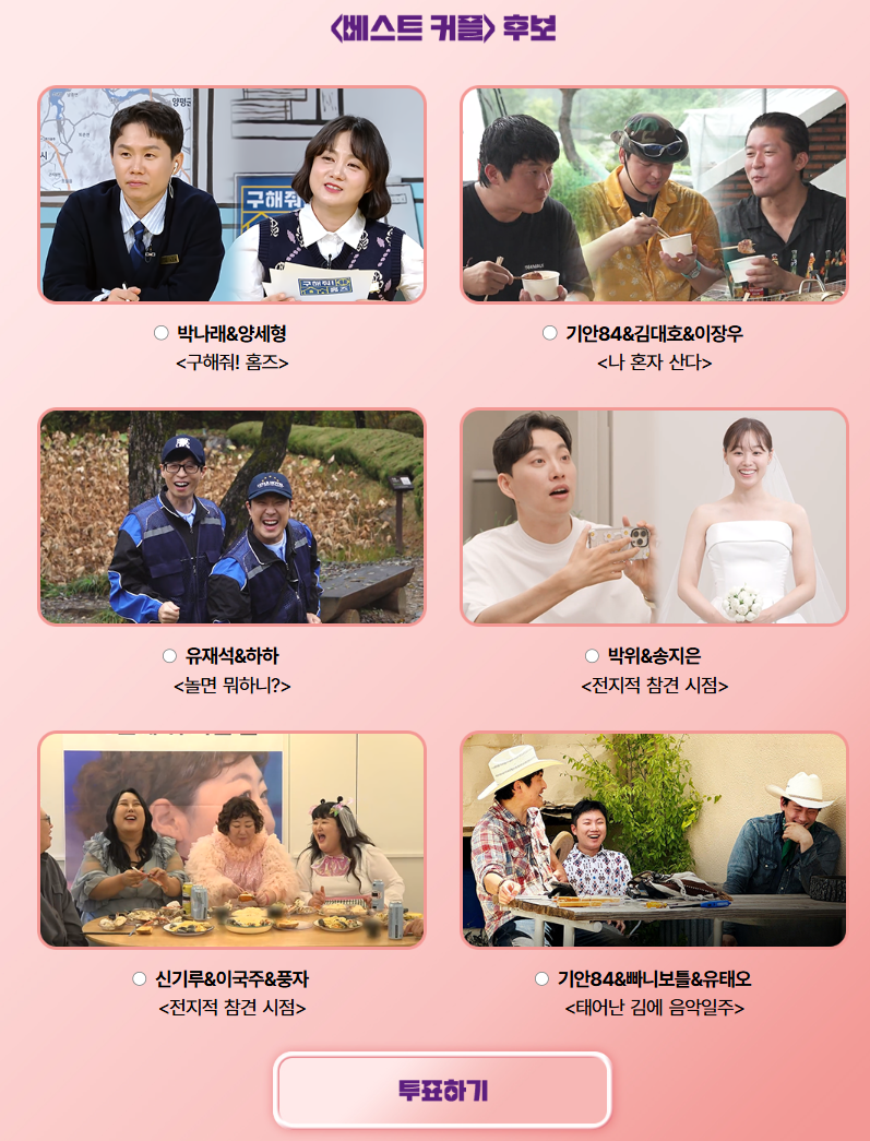 MBC는 베스트커플상을 시청자 투표로 진행하게 되는데요. 평소 관심 있던 프로그램이거나 연예인이면 아래 링크에서 꼭 투표해 보시기 바랍니다. ^_^ 투표는 12월 28일 수요일 자정까지 가능합니다!!