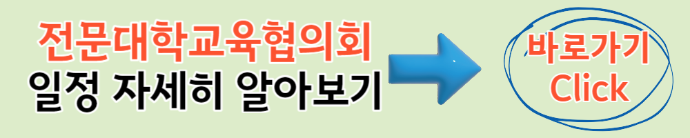 대학별로 전형일정을 자세히 알 수 있는 전문대학교육협의회라는 홈페이지가 있습니다. 홈페이지에 접속하셔서 아래와 같이 들어가시면 자세한 일정을 알 수 있으니 참고해 주세요 :)